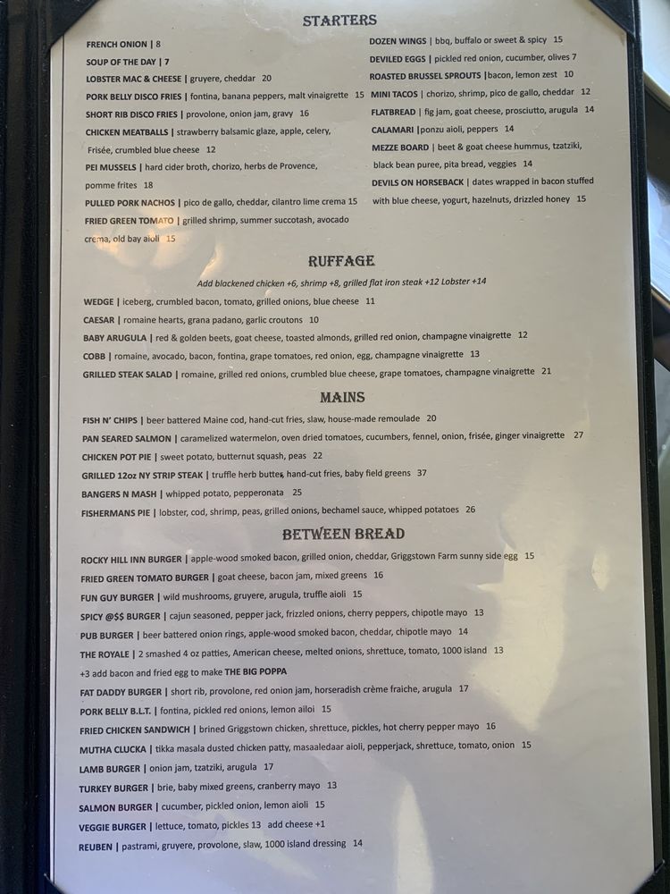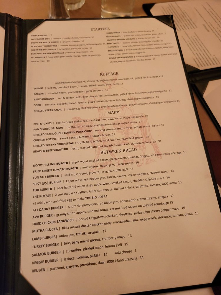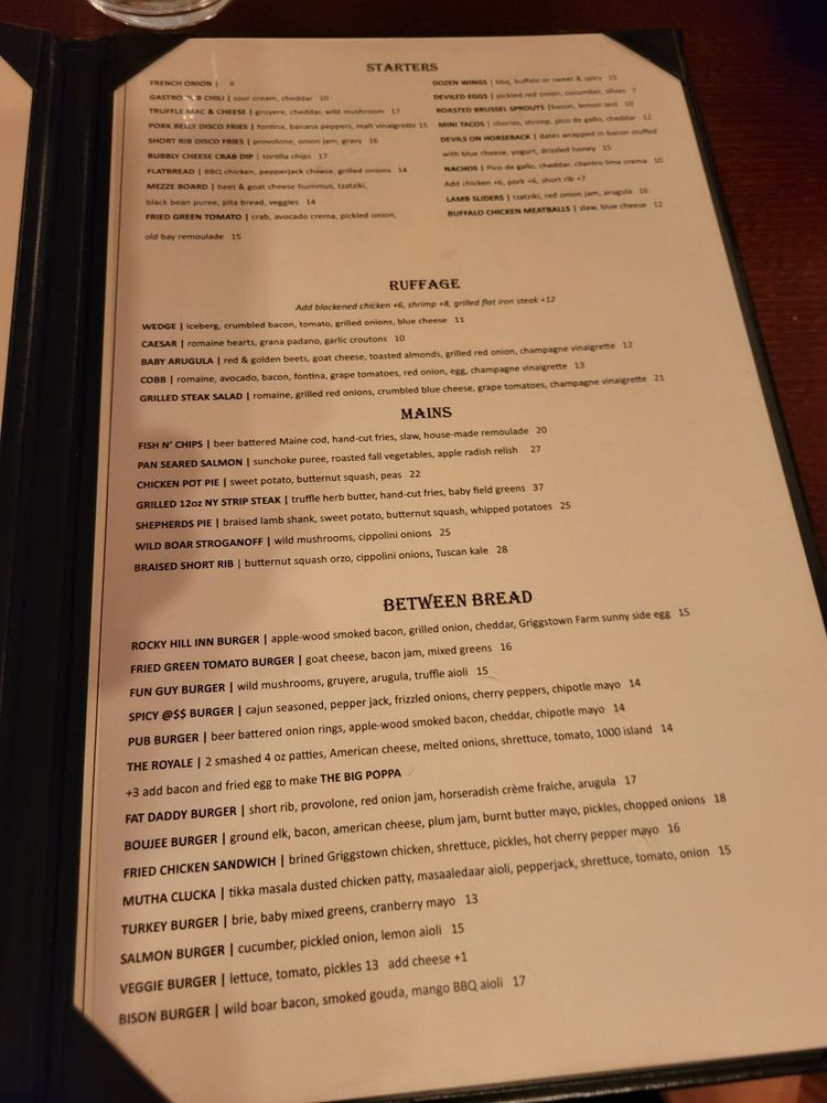 Rocky Hill Inn & Tavern, located at 137 Washington St in Rocky Hill, NJ, offers a diverse menu with vegan and vegetarian options. This veteran-owned establishment provides a casual dining experience with moderate noise levels and is suitable for groups, families, and individuals. The full bar, happy hour, and outdoor seating make it a versatile spot for various occasions. Customers rave about the food quality, efficient service, and inviting atmosphere. Dishes like the pub burger, BBQ wings, lobster mac n cheese, and crispy fish and chips have left diners thoroughly impressed. The French onion soup and deviled eggs are highlighted for their exceptional taste and presentation. The attentive and articulate staff enhance the overall dining experience at Rocky Hill Inn & Tavern.